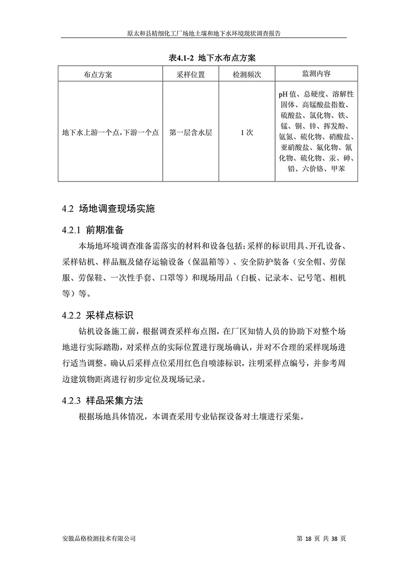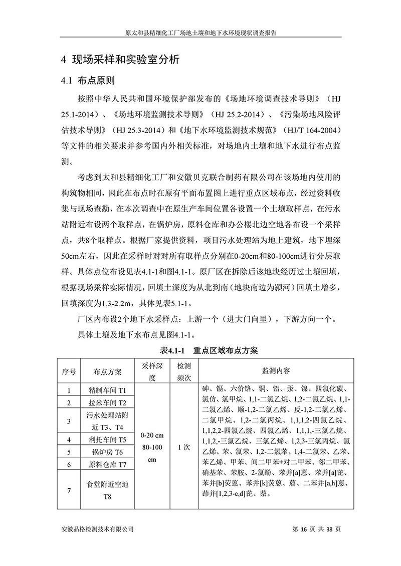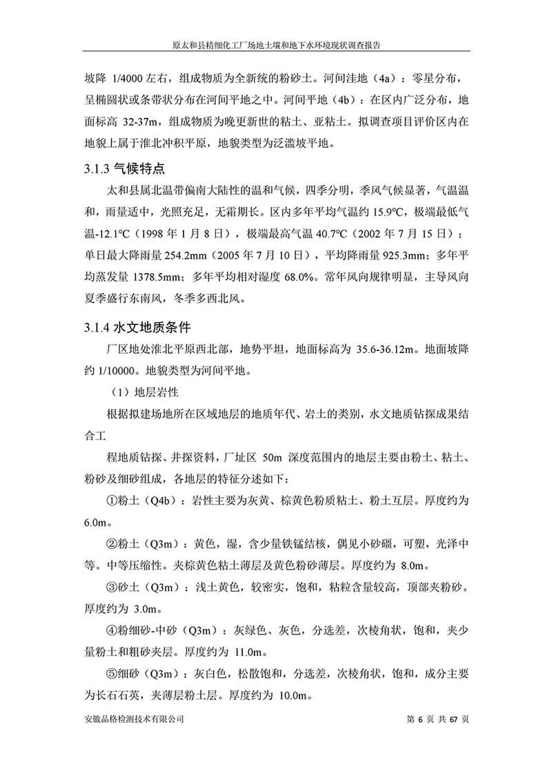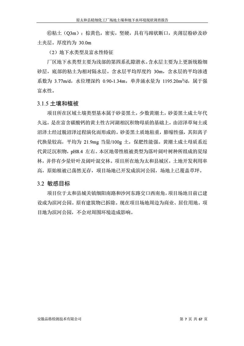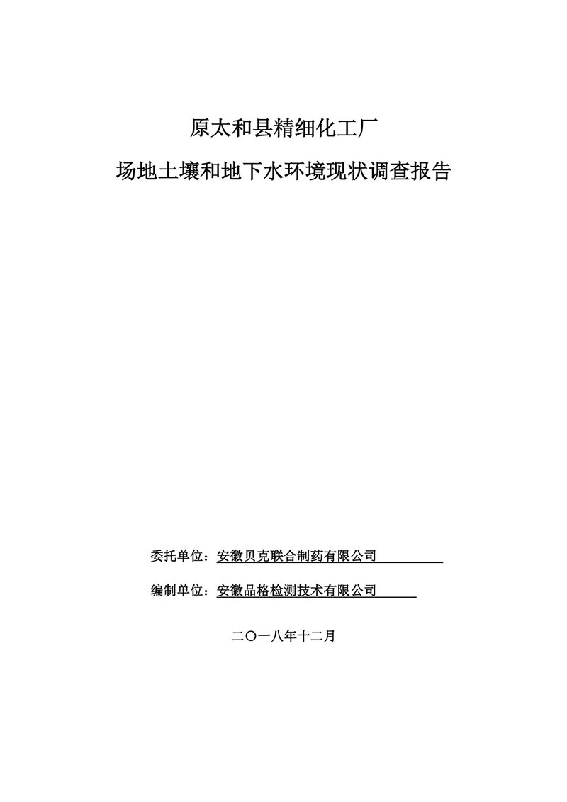 原太和縣精細(xì)化工廠 場地土壤和地下水環(huán)境現(xiàn)狀調(diào)查報告