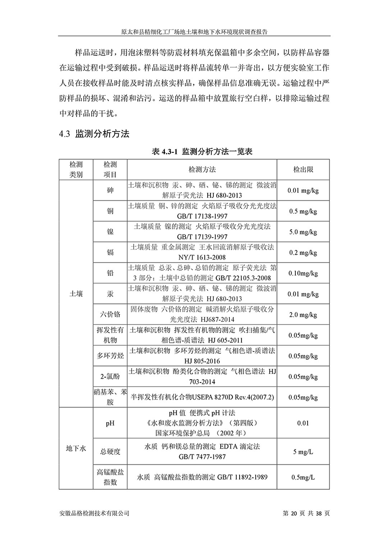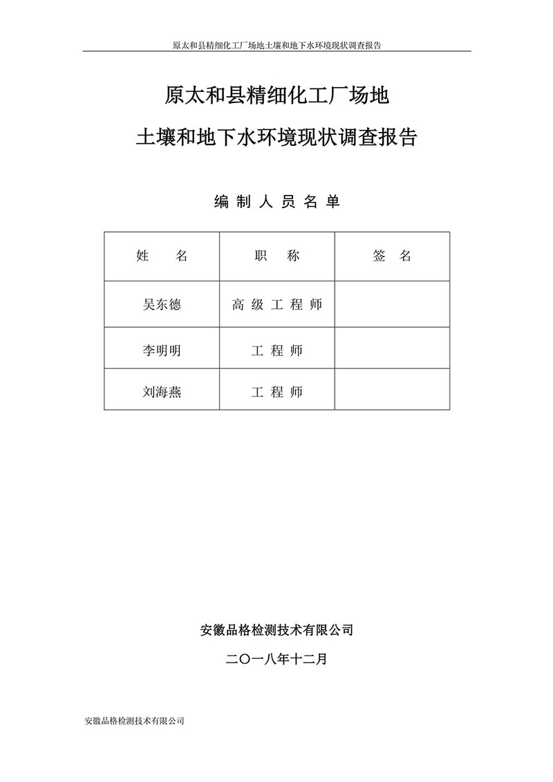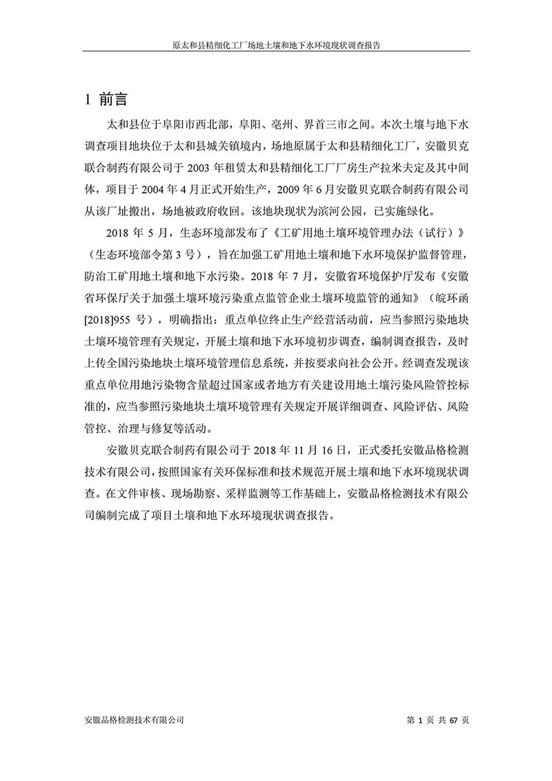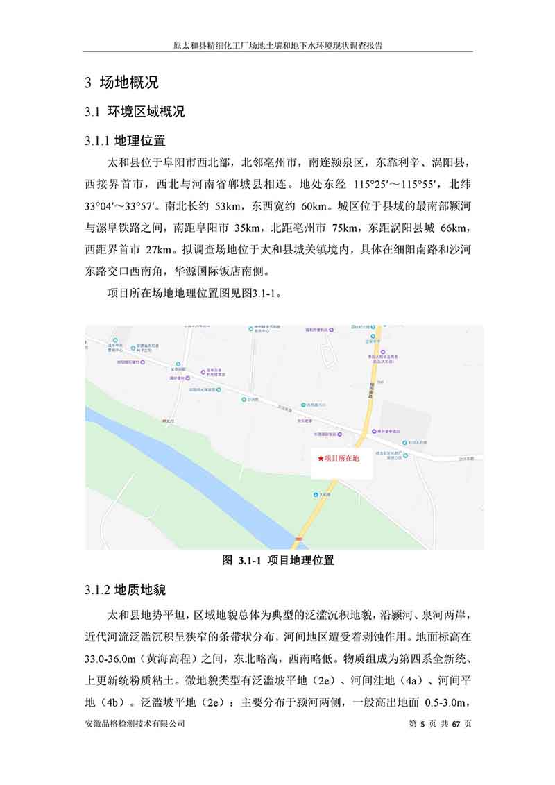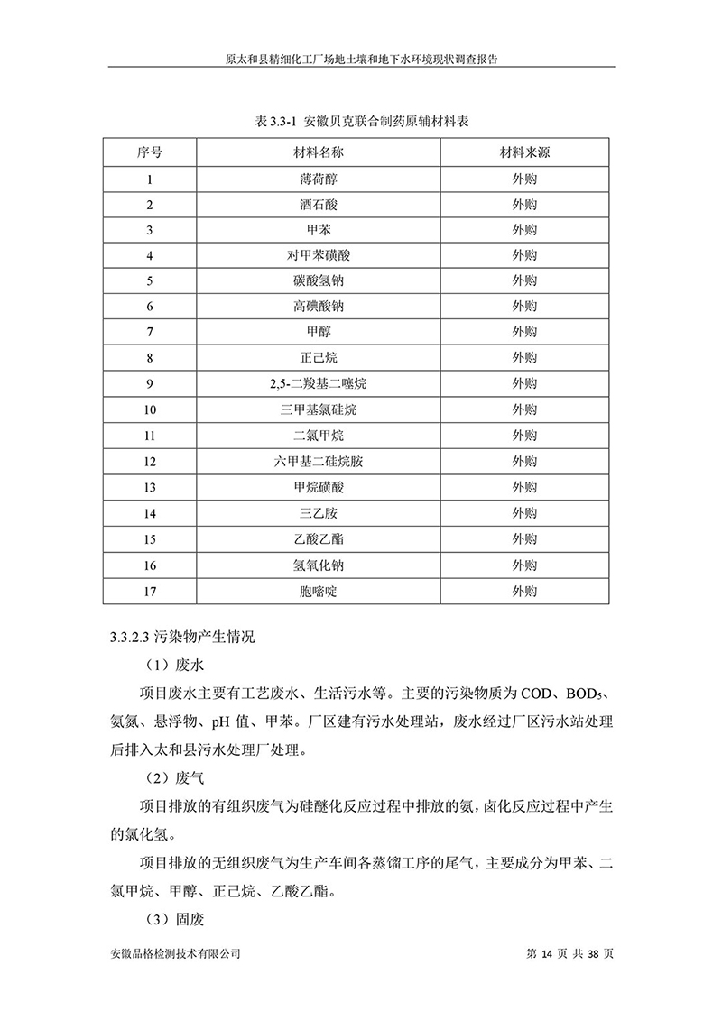 原太和縣精細(xì)化工廠 場地土壤和地下水環(huán)境現(xiàn)狀調(diào)查報告