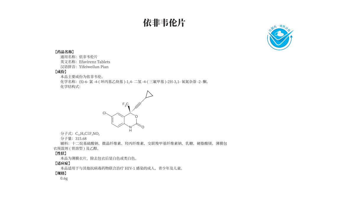 依非韋倫片(600mg)