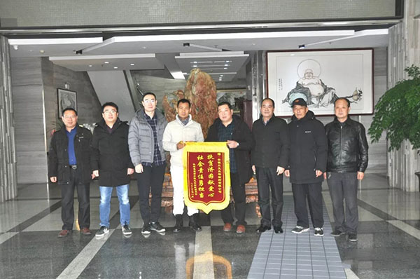 會議上牛書記一行介紹一年來淮光村在脫貧攻堅戰(zhàn)中所取得的各項工作成績進展,并對安徽貝克多年來支持淮光村扶貧工作表示衷心的感謝,最后送上一面紅彤彤錦旗“扶貧濟困獻愛心,社會責任勇?lián)敗?,以感謝公司連續(xù)多年來對淮光村貧困家庭的幫扶善舉。