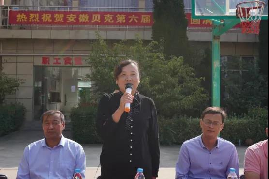 集團(tuán)工會主席張華宣布貝克制藥2020年慶十一運(yùn)動(dòng)會開幕,縣總工會黨組書記、副主席劉靜,貝克原料藥基地總經(jīng)理張偉參加活動(dòng)。