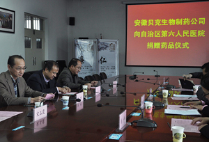 - 2014年1月20日上午,安徽貝克聯(lián)合制藥有限公司向新疆紅十字會(huì)捐贈(zèng)藥品儀式在自治區(qū)第六人民醫(yī)院舉行,新疆紅十字會(huì)黨組成員、副會(huì)長(zhǎng)艾買提江·依達(dá)伊吐拉,安徽貝克聯(lián)合制藥有限公司總裁助理陳靜,自治區(qū)第六......